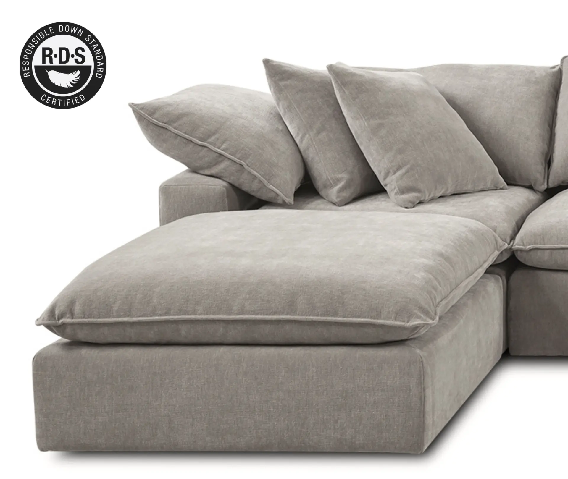 Deep, plush cushions filled with a mix of feather & foam and enhanced with loose, adjustable RDS (Responsible Down Standard) Certified feather blend cushions, combine for personalized comfort and durability.