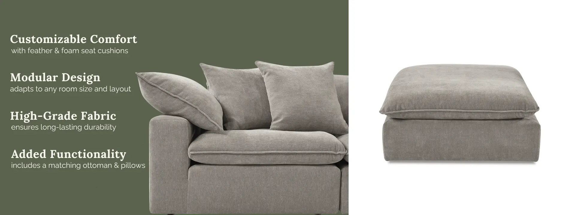 Includes a matching ottoman and pillows for extra comfort and versatile use in your living area.