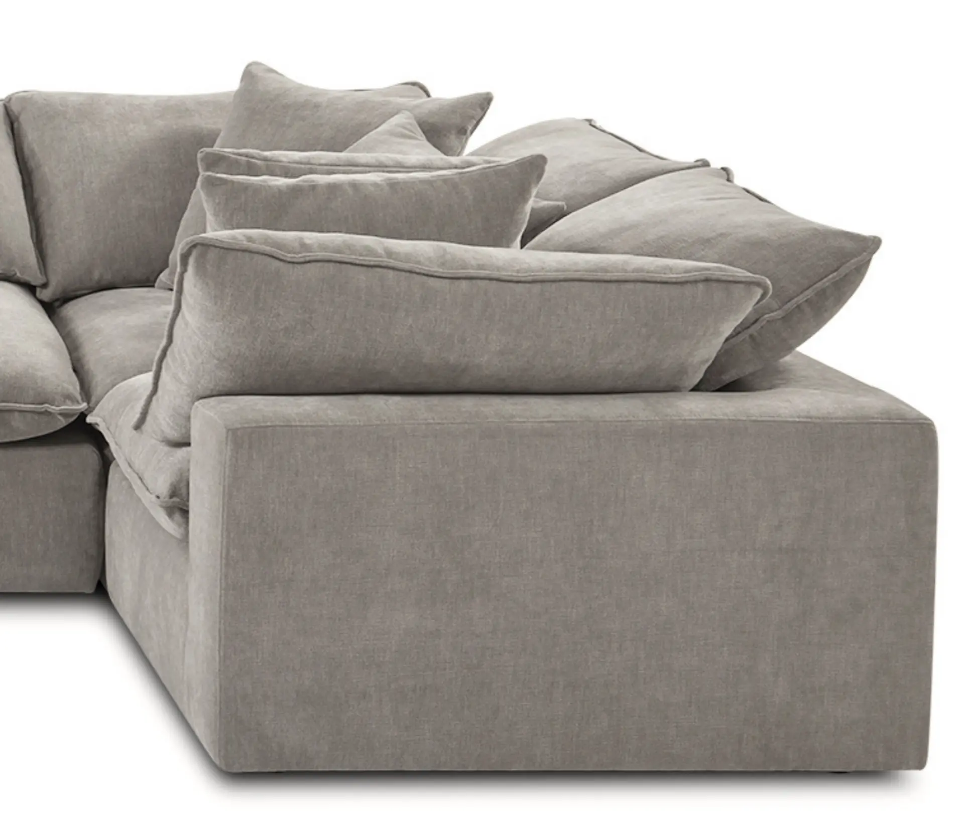 The Sereen's casual, relaxed design, reminiscent of a cloud, is intentionally soft and inviting. Its loose structure and abundant pillows are easy to rearrange and fluff back into shape, ensuring it looks tidy with minimal effort.