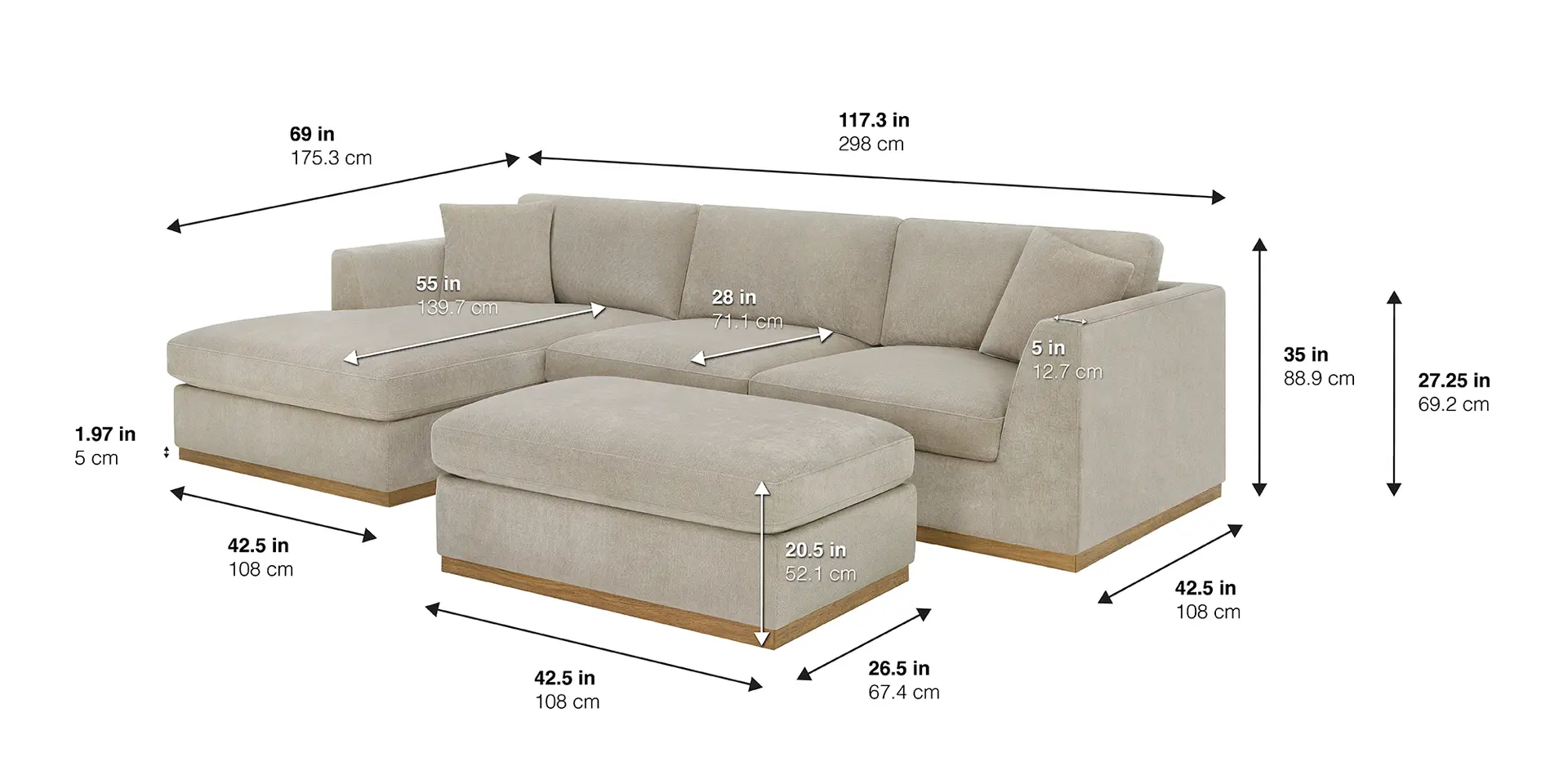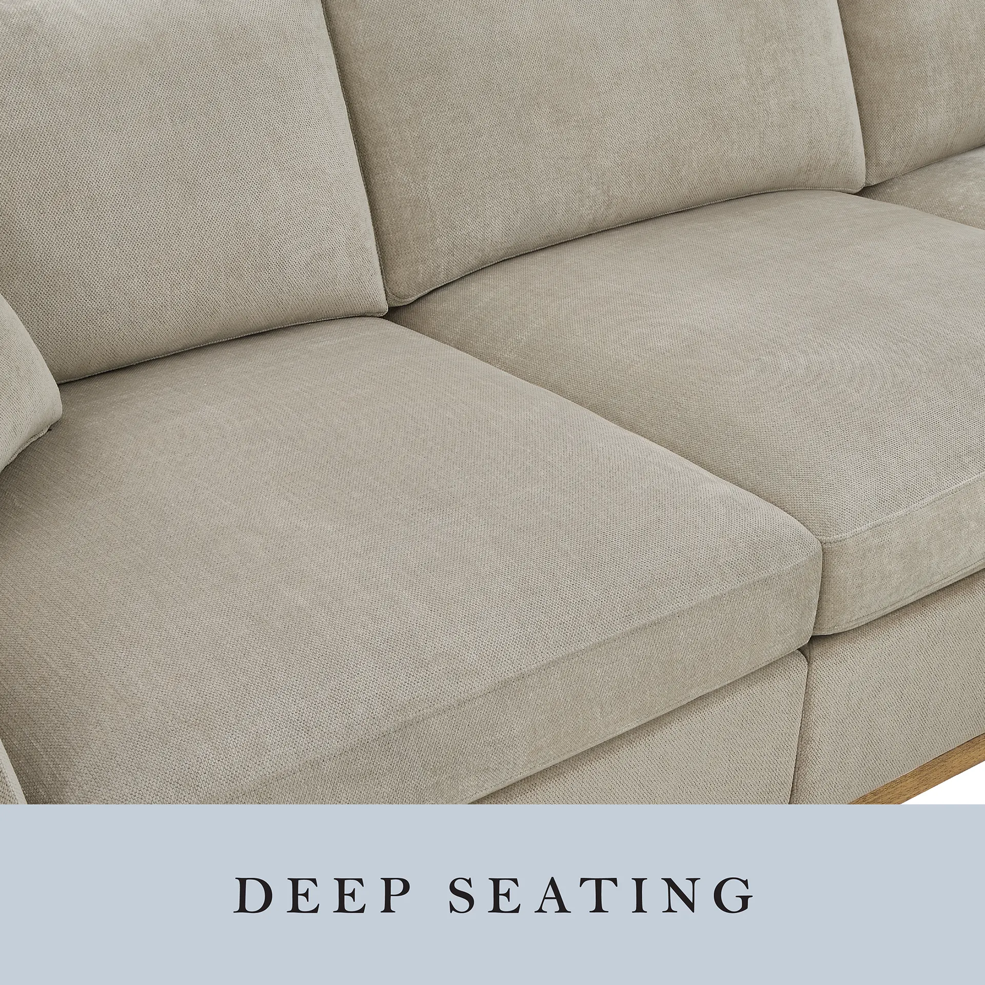 Deep seating and a spacious chaise make this sofa perfect for relaxing.
