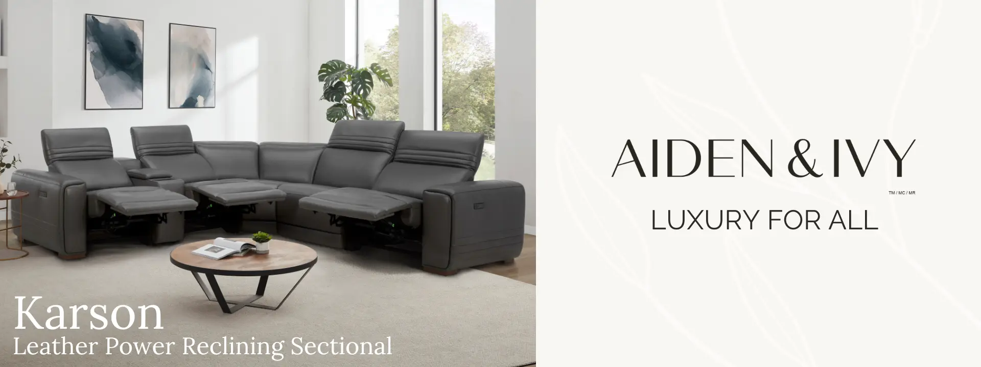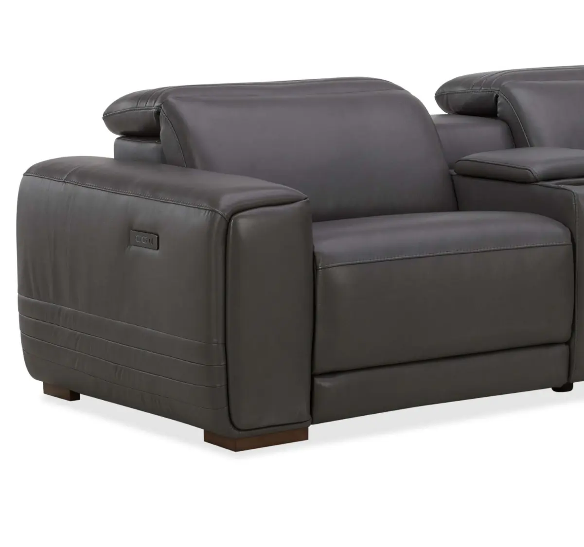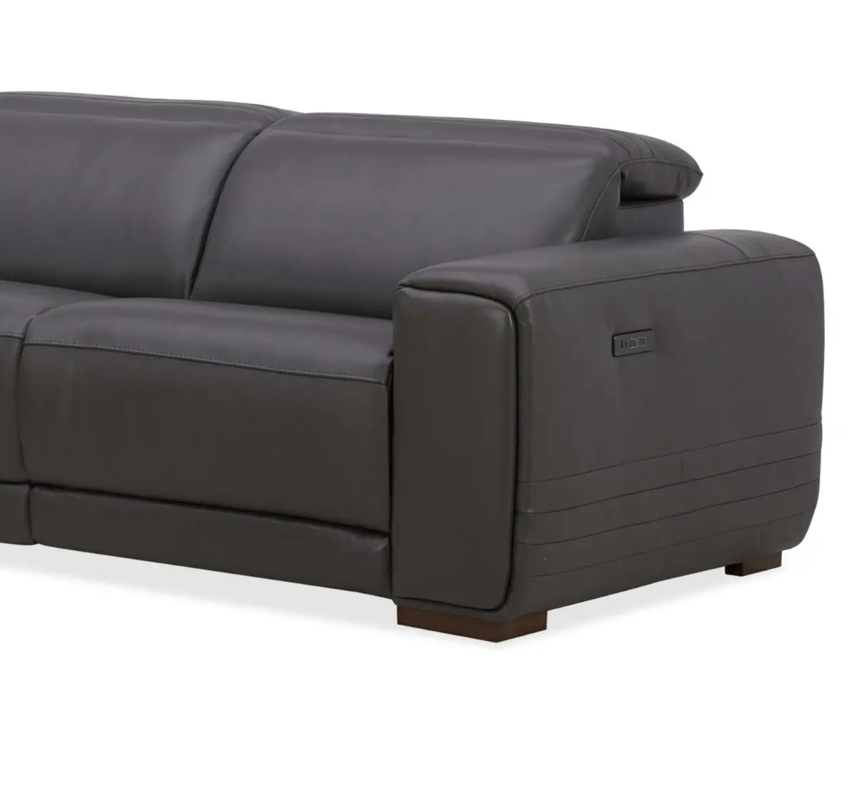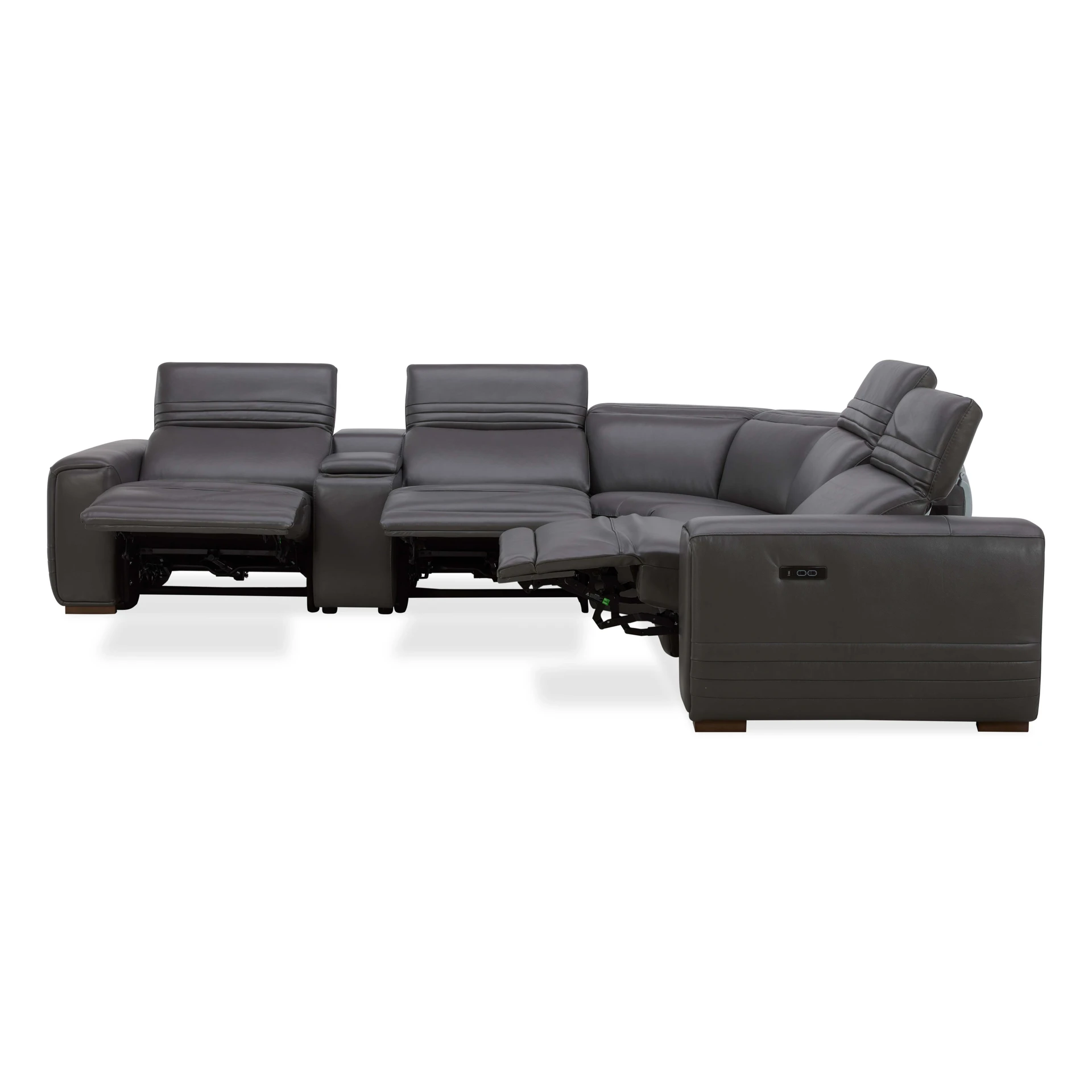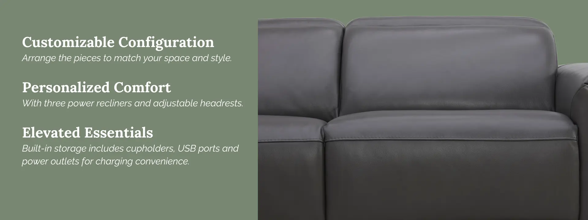 Equipped with three power recliners and adjustable headrests for customized seating comfort.
