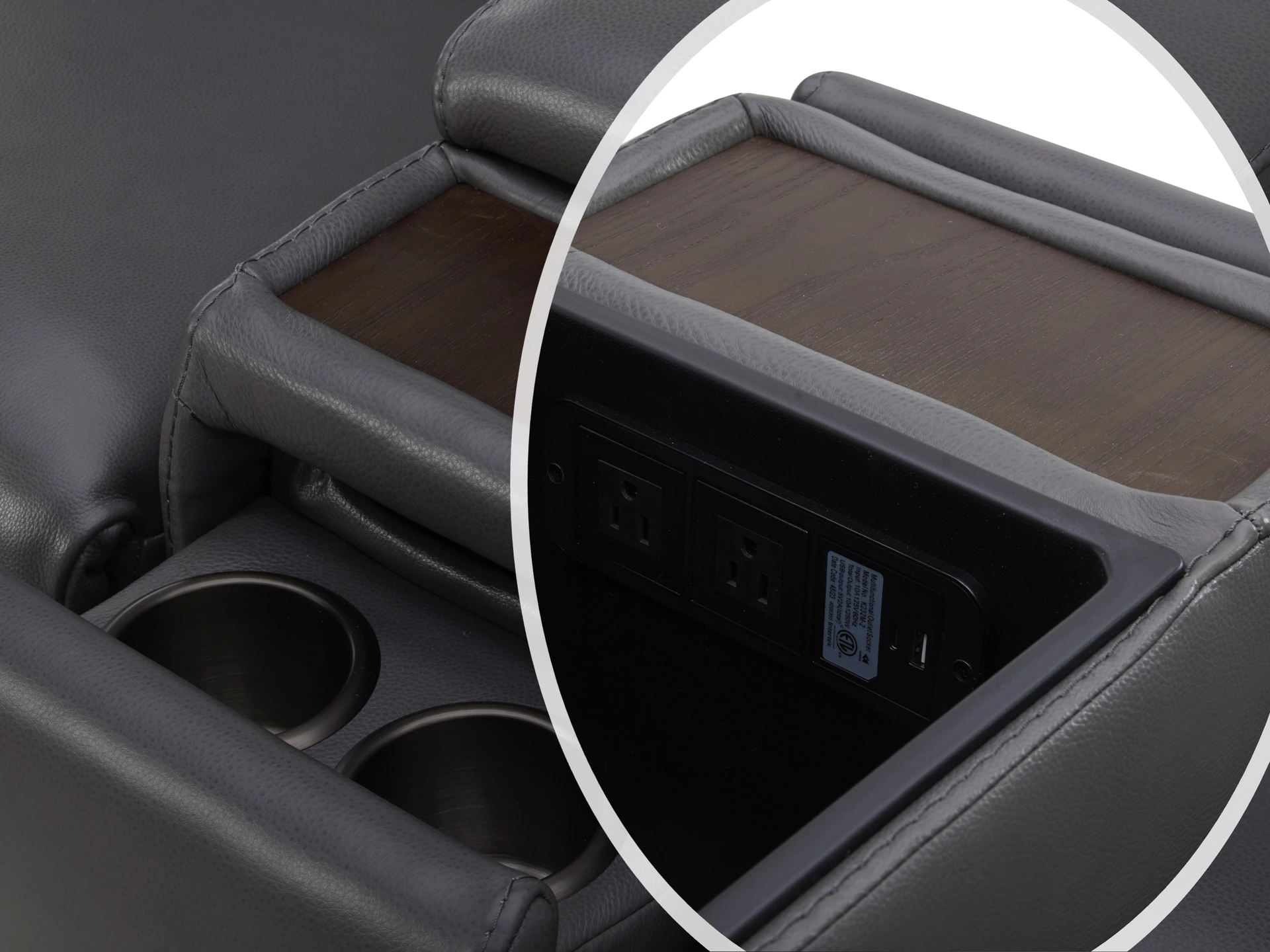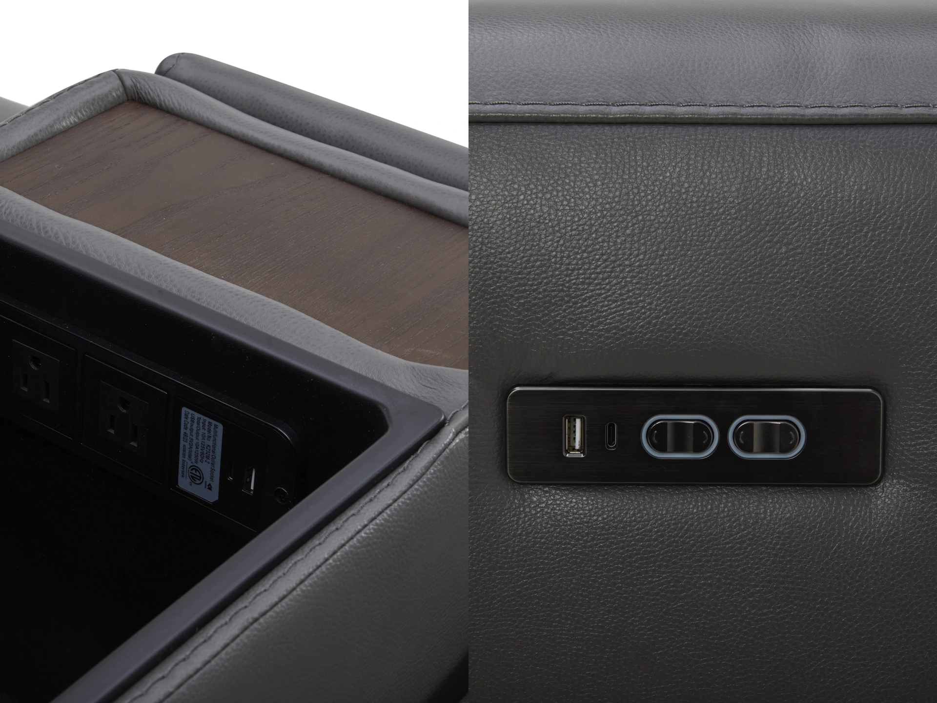 Features USB and USB-C ports within the storage console and on the power switches for easy access to device charging.