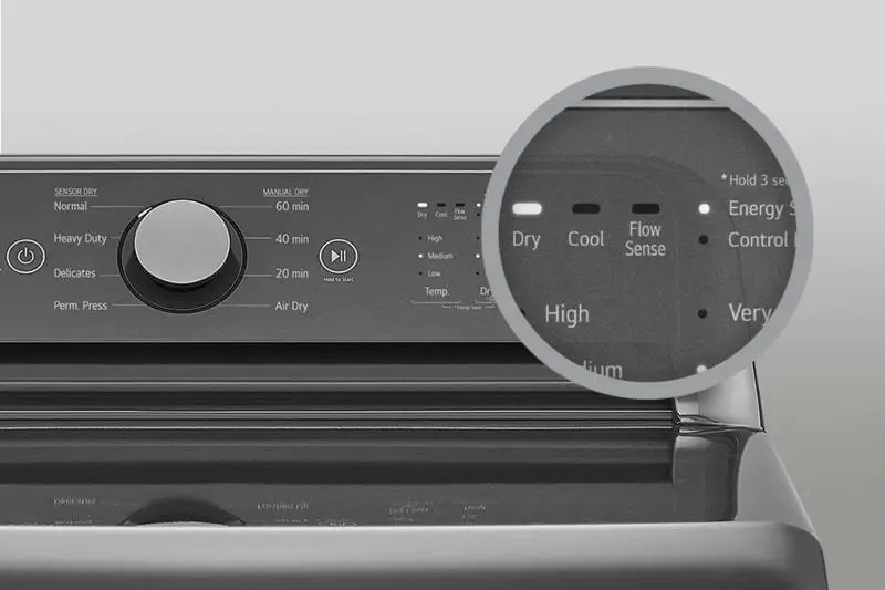 FlowSense® Duct Clogging and Lint Filter Indicators let you know when your ducts and filter need cleaning to avoid lint buildup, improve the dryer’s performance for greater efficiency and lower utility bills, and help give you safer, worry-free operation with fewer service calls.