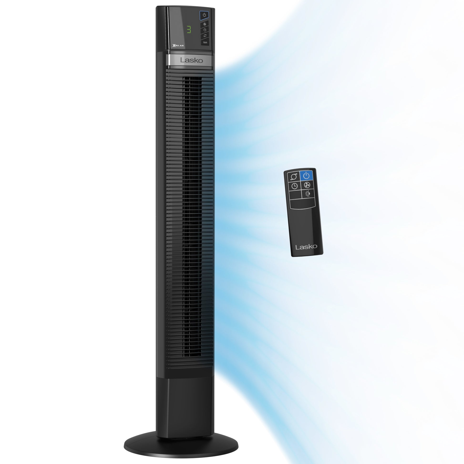 This 48-Inch Xtra Air Tower Fan with Nighttime Setting and Remote Control helps to promote a cool environment. Featuring a slim, space-saving design this sleek fan is perfect for busy spaces like living rooms, bedrooms, and home offices where space can be at a premium. At nearly 48" high, it also has an extended comfort zone to send cooling breezes above furniture for whole-room comfort. This capable tower fan features an auto-off timer mode, multi-function remote control, and widespread oscillation. Plus, the convenient Nighttime setting automatically decreases fan speed and dims controls for overnight use.