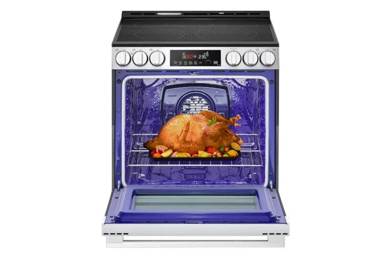 Prepare your favorite meals with this 30 in. 6.3 cu. ft. Smart Electric Range with Fan Convection, Air Fry & EasyClean in PrintProof Stainless Steel. It's simple to clean and maintain with the 10-minute EasyClean feature. Use this for preheating, baking, roasting and more. The stainless-steel finish easily pairs with your existing kitchen decor.
