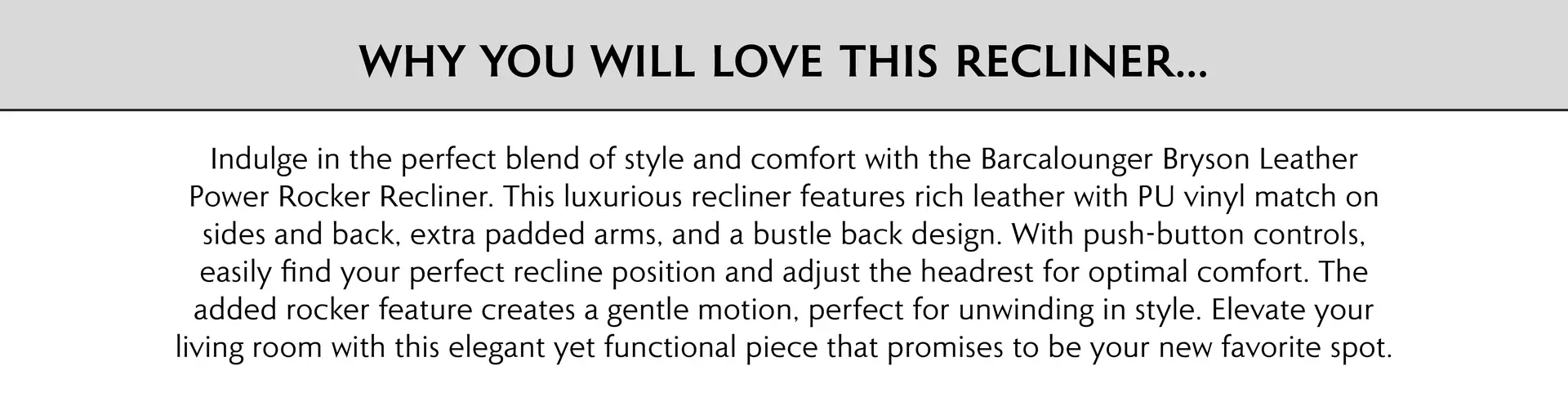 Crafted with a combination of high-quality leather and PU vinyl, this recliner offers a luxurious look and feel that's also practical. The premium materials ensure durability and are designed to be easy to maintain, so your furniture remains looking exquisite for years to come.